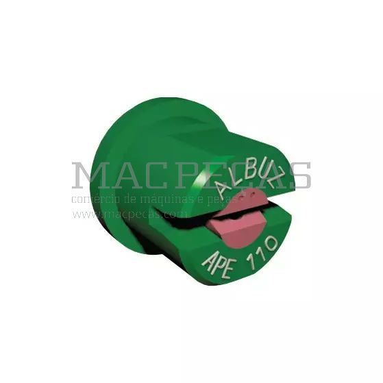 A buse ALBUZ APE verde é indicada para aplicações agrícolas em grande escala, compatível com todos os tipos de tratamentos como herbicidas, fungicidas e inseticidas. Fabricada em cerâmica de alta resistência, possui jato plano com ângulo de 110°, garantindo cobertura eficiente e uniforme. Funciona entre 2 e 4 bar de pressão, com excelente durabilidade e precisão, sendo fornecida em embalagem blister com 8 unidades.