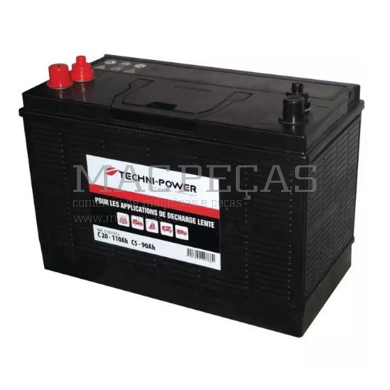 BATTERIE 12V 110AH DECHARGE LENTE DOUBLE BORNES + A GAUCHE TECHNI POWER