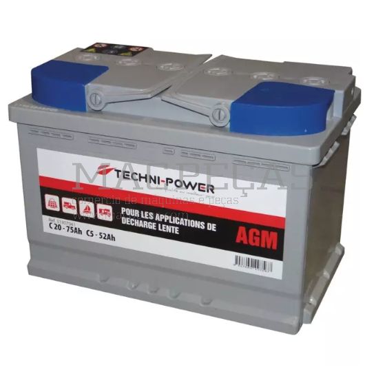 BATTERIE 12V 70AH DECHARGE LENTE AGM LOISIR + A DROITE TECHNI POWER