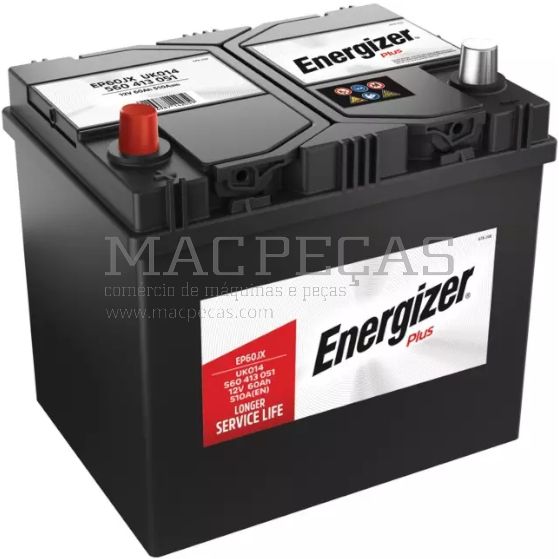 A bateria ENERGIZER PLUS EP60JX 12V 60AH é projetada para arranques eficientes. Com tensão de 12V e capacidade de 60Ah, oferece 510A de intensidade de frio (EN). Seu design compacto (232x173x225mm) e polaridade + à esquerda tornam-na versátil. O modelo EP60JX, com bandeja B00, pesa 14.05kg e é embalado a granel, proporcionando solução confiável para diversas necessidades de arranque.