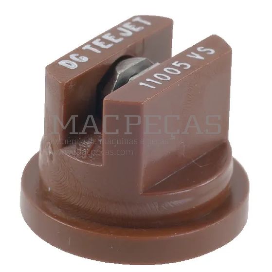 Bico de jato plano TeeJet com 110 graus de ângulo, código 05, feito de aço inoxidável na cor castanha. Projetado para uma aplicação uniforme de líquidos agrícolas, oferece durabilidade e resistência. Uma escolha eficaz para agricultores que buscam um bico de jato plano confiável e durável.