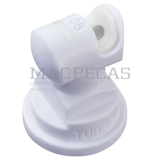 É um bico de ângulo amplo da TeeJet, com 110° e tamanho 08, feito de cerâmica branca. Ideal para pulverização agrícola eficiente em grandes áreas.