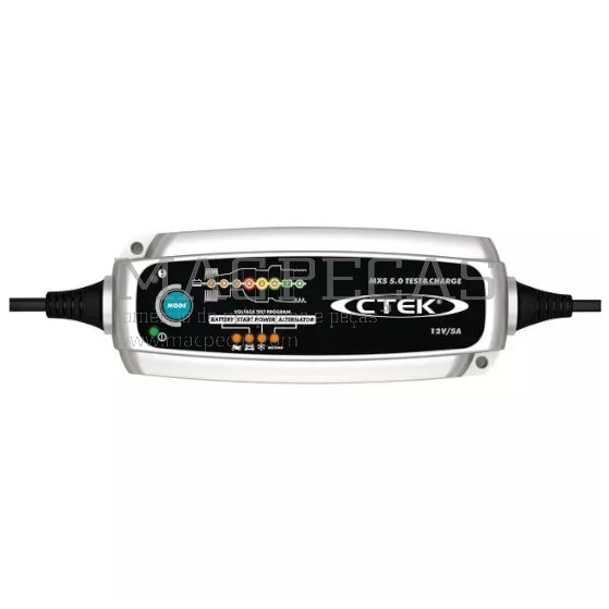 O CTEK MXS 5.0 TESTE & CARGA é um carregador inteligente de 12V com 3 programas e corrente máxima de 5A, ideal para baterias chumbo-ácido de 1,2Ah a 160Ah. Oferece corte automático, proteção IP65, cabo de 1400mm e compatibilidade com vários tipos de bateria (líquido, gel, AGM, MF, Ca). Compacto e seguro, é perfeito para carga e manutenção eficazes.
