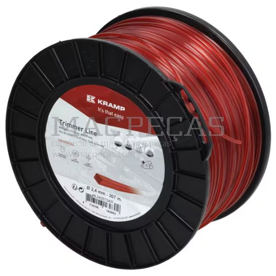 O fio de corte Kramp NL24207SKR é um fio universal muito utilizado, com 2,4 mm de diâmetro e 207 metros de comprimento. Com perfil quadrado e cor vermelha, é ideal para diversos trabalhos de corte. Embalagem em carretel para fácil manuseamento e uso prolongado.