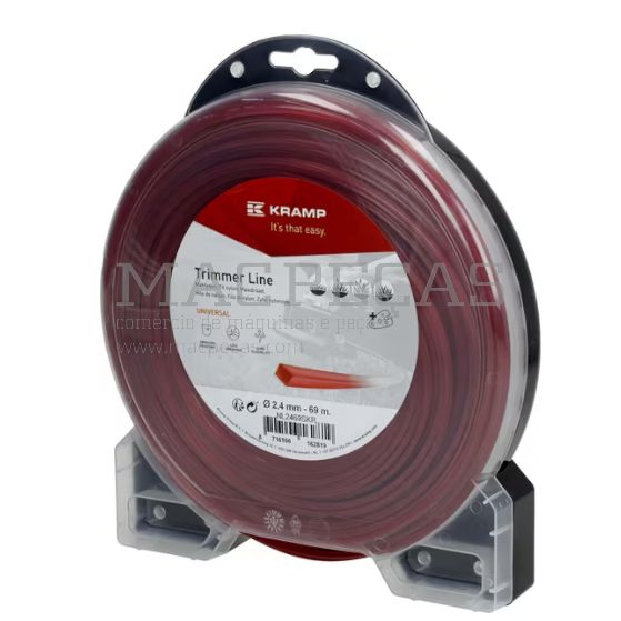 O fio de corte Kramp NL2469SKR é o fio universal mais utilizado, com 2,4 mm de diâmetro e 69 metros de comprimento. Com perfil quadrado e cor vermelha, é ideal para uma ampla variedade de trabalhos de corte. Embalado em formato donut, este fio é resistente e prático para uso diário, apesar de não ter baixo nível de ruído.