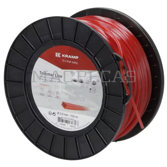 NL30132SKR – Fio de corte Ø3 mm x 132 m, quadrado, vermelho, Kramp