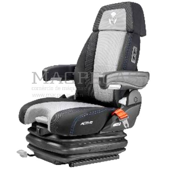 O banco Grammer oferece conforto premium com ajuste automático de peso e sistema de climatização ativo. Com estofamento em tecido, largura de 550mm e suspensão pneumática, proporciona ajustes ergonómicos, suporte lombar pneumático e sistema de retenção integrado. Ideal para garantir conforto e segurança em longos períodos de condução.
