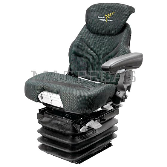Modelo: Maximo Dynamic define padrões para bancos de suspensão passiva de tratores médios e grandes, com ajustes automáticos de peso, amortecimento e apoio lombar pneumático, proporcionando conforto excepcional.