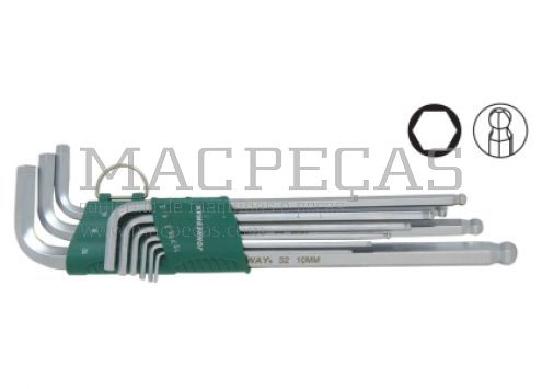 Jogo de 9 chaves hexagonais macho extra longas com pontaesférica antideslizante