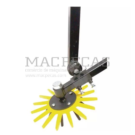 Viga principal reforçada KULT KRESS de 370 mm, modelo médio e cor amarela, com altura de 500 mm. Apresenta inclinação e desvio ajustáveis, sendo adaptável a todas as máquinas vinícolas e agrícolas. Espaçamento entre regos de 90 cm e velocidade de trabalho entre 4 a 10 km/h, ideal para trabalho eficiente e resistente em vinhas e terrenos agrícolas. Produto robusto para uso profissional.
