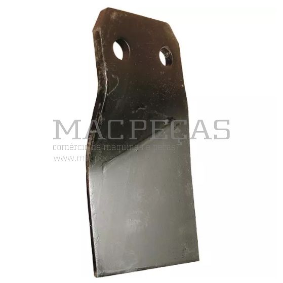 Lâmina de arado rotativo 80x8x180 mm direita tipo BREVI/MASCHIO, fabricada para o modelo Super Cobra. Possui furo de 14.5 mm, distância entre centros de 44 mm e é compatível com parafuso 14x40 mm. Peça de origem robusta e resistente, ideal para substituições em equipamentos agrícolas. Embalada a granel.