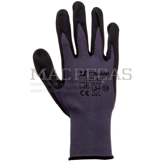 As luvas de trabalho em malha de nylon resistente a cortes da Kramp Protect possuem revestimento de espuma nitrilo que repele óleo, gordura e umidade, proporcionando excelente aderência em ambientes secos e úmidos. Oferecem máximo conforto e proteção para as mãos, com PVC nas palmas e dedos para fixação e durabilidade, e parte traseira respirável para conforto adicional. Permitem também o uso de smartphones e tablets.