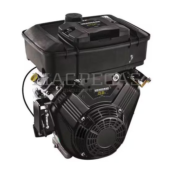Motor Briggs & Stratton Vanguard de 627 cm³, com 2 cilindros e potência máxima de 23 cv. Equipado com arranque elétrico, cambota horizontal reta (76 mm de comprimento e 25,4 mm de diâmetro), volante pesado, bomba de combustível e filtro de óleo. Inclui depósito de combustível e sistema de carga de 12 V / 16 A. Ideal para aplicações exigentes e maquinaria profissional.