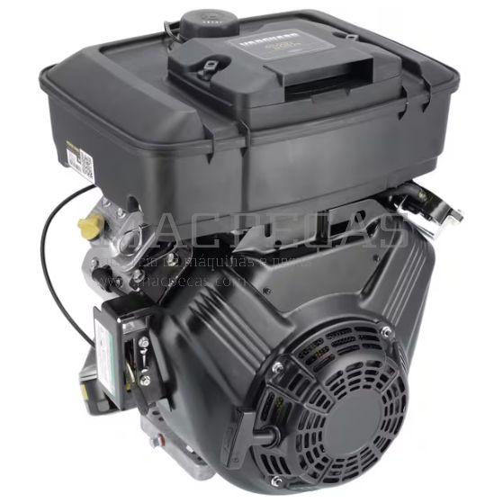 Motor Briggs & Stratton de 570 cm³ com dois cilindros, potência máxima de 18 cv e arranque elétrico. Apresenta cambota horizontal reta, arrefecimento a ar e construção robusta com volante pesado. Não inclui escape, depósito, filtro de óleo nem bomba de combustível, sendo uma solução eficiente para maquinaria que requer um motor fiável com boa relação potência/tamanho.
