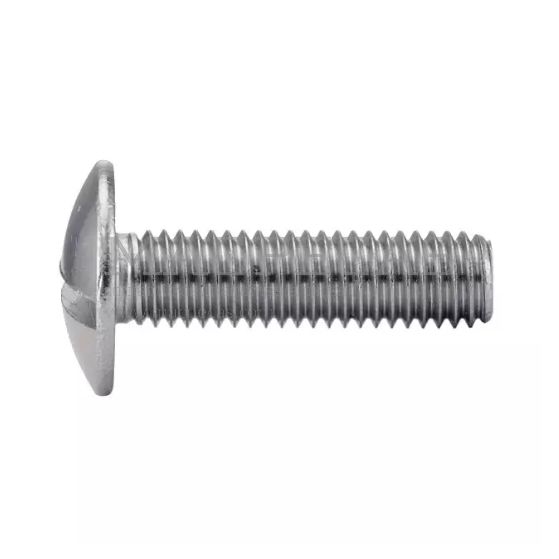 Parafuso Cabeça Abaulada 5x20 Inox A2 (Caixa de 100) - Este parafuso com cabeça abaulada tem diâmetro de 5 mm e comprimento de 20 mm, com rosca total e classe A2. Fabricado em inox, oferece resistência à corrosão, tornando-o ideal para ambientes exigentes. Não inclui porcas e segue a norma NFE 27128. A embalagem contém 100 unidades, perfeitas para aplicações que exigem durabilidade e resistência ao desgaste.