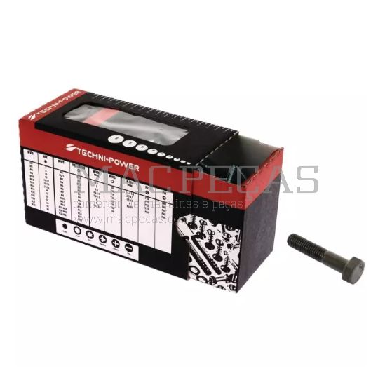 Parafuso com cabeça sextavada 10x45 mm em aço bruto, classe 10.9, com rosca parcial de 26 mm e passo de 1.5 mm. Fabricado segundo as normas DIN 931, ISO 4014 e NFE 25112. Indicado para aplicações industriais que requerem alta resistência mecânica. Fornecido em caixa com 100 unidades, sem porcas incluídas.