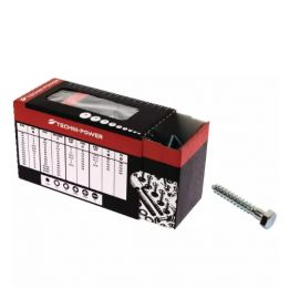 Parafuso tirefond com cabeça sextavada 8x80 mm, fabricado em aço galvanizado classe 4.6. Ideal para fixações fortes em madeira e materiais pesados. Cumpre as normas DIN 571 e NFE 25607. Embalado em blister com 30 unidades, oferece elevada resistência à corrosão e segurança em aplicações exteriores ou estruturais.