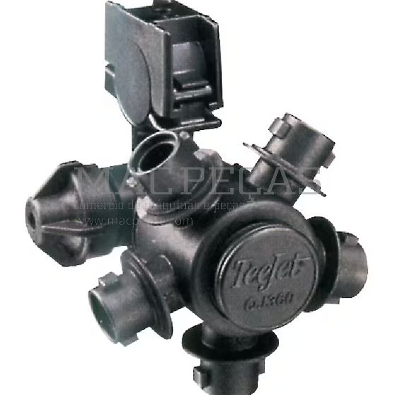 Porta-bicos TeeJet QJ365C34NYB com 5 saídas, projetado para tubos de 26,4 mm (3/4"). Ideal para pulverização agrícola intensiva, este modelo oferece uma válvula anti-gotas com abertura a 0,7 BAR, garantindo um controlo eficaz da aplicação e evitando perdas. A estrutura robusta e o furo de ligação de 9,5 mm asseguram compatibilidade com sistemas padrão e alta fiabilidade em campo.