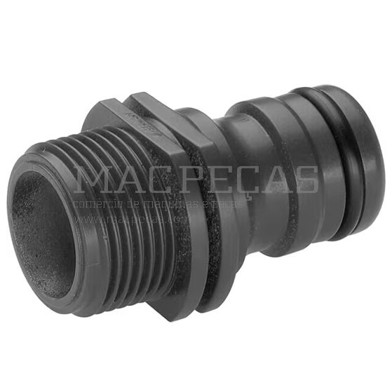 Gardena Conector Reto GA2821 é um adaptador prático que permite ligar rapidamente aparelhos de rega com rosca interna ao sistema Original Gardena. Possui uma rosca macho BSP de 3/4" (26,4 mm) e uma ligação de engate rápido macho de 22,5 mm (3/4"), garantindo compatibilidade total e ligação estanque. A montagem é simples e dispensa ferramentas, assegurando uma conexão segura e resistente à pressão da água. Fabricado em plástico de alta qualidade, é ideal para aplicações domésticas e profissionais de rega e irrigação.