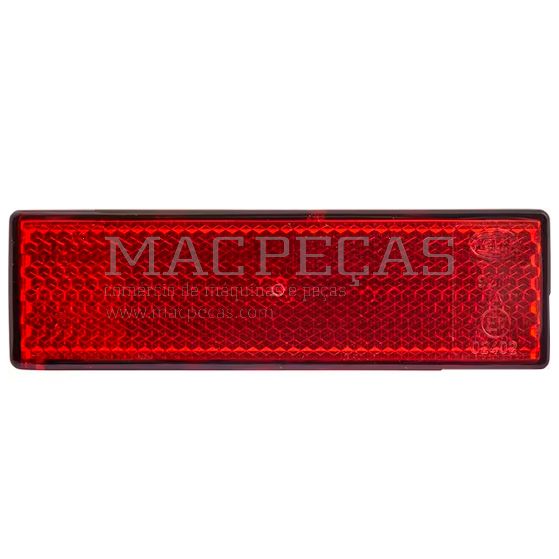 Este refletor retangular de cor vermelha, com 27 mm de altura e 91,8 mm de comprimento, possui uma espessura de 6,3 mm e uma área efetiva de 21 cm². A sua montagem é feita através de adesivo (autocolante) e é fixado verticalmente. Compatível com a norma ECE E17 402, este refletor é ideal para veículos agrícolas e máquinas de construção, podendo ser colocado na parte traseira. Com um design eficiente e de fácil instalação, oferece visibilidade e segurança.
